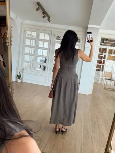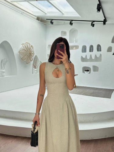 Kolsuz Uzun Kabardin Elbise - Gri