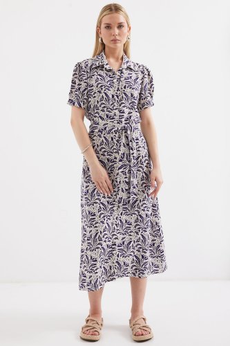 2213 Kısa Kol Viskon Elbise - F.Lacivert