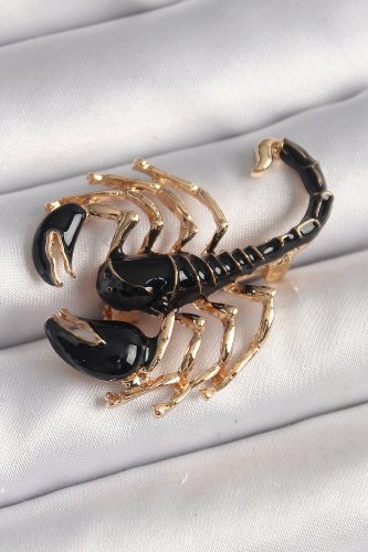 Pirinç Gold Renk Siyah Akrep Model Kadın Broş