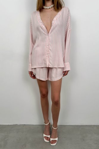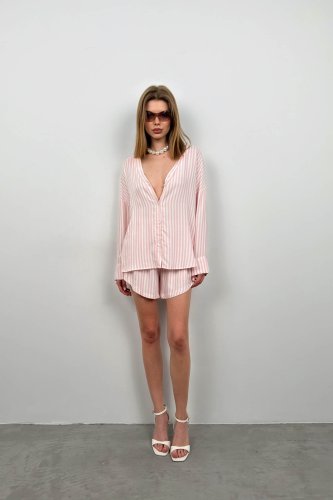 Çizgili Gömlek Şort Takım