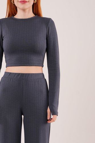 Fitilli Bluz Ve Pantolon Antrasit İkili Takım