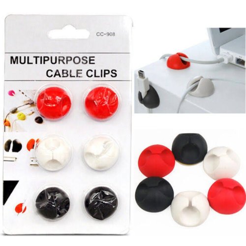 Yapışkanlı Kablo Sabitleyici Düzenleyici 6lı Paket 2 Beyaz-2 Kırmızı-2 Siyah