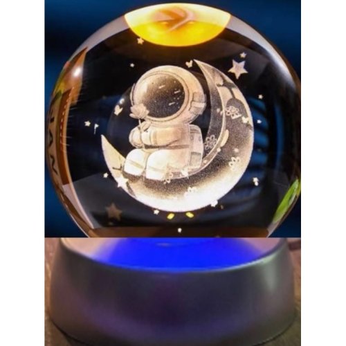 Dekoratif Ay Üstünde Astronot Tasarımlı Plastik Altlıklı Cam Küre
