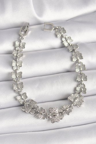 Pirinç Gümüş Renk Zirkon Taşlı Kelebek Model Zincir Kadın Bileklik