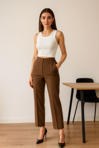 Poly Viscose Yüksek Bel Pervazli Pantolon