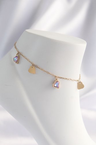 316L Çelik Gold Renk Minimal Renkli Zirkon Taşlı Kalp Halhal