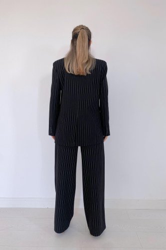 Siyah Çizgili Ceket Yelek Ve Pantolon Takım