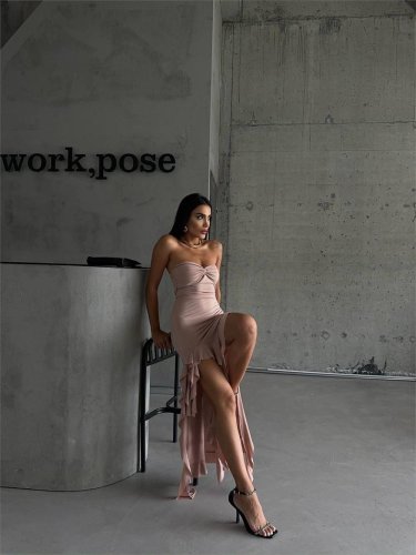 STRABLEZ SANDY ELBİSE YANLARI KATLI - Bej