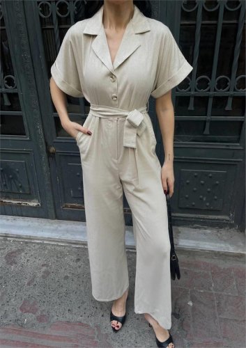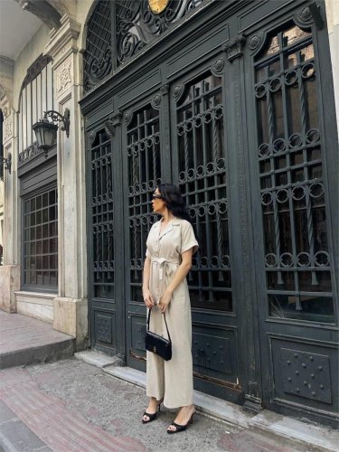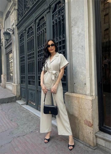 KETEN TULUM BEL BAĞLAMA DETAYLI - Krem