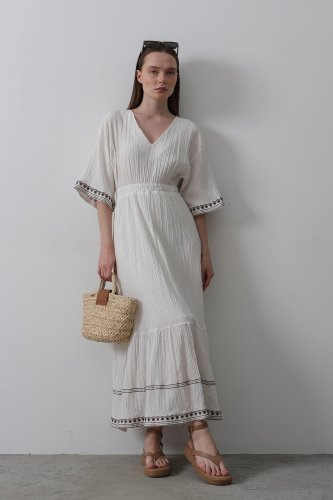 KolEtekNakışlıElbise - Beyaz