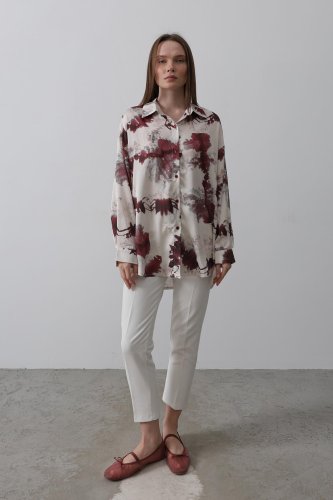 Baskılı Gömlek - Bordo