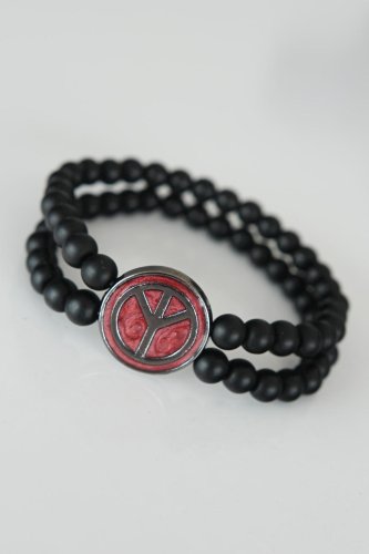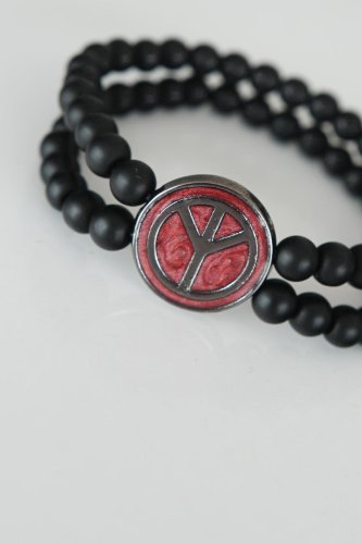 Barış Figürlü Bordo Renk Füme Metal Aksesuarlı Çift Sıra Oniks Doğal Taş Erkek Bileklik