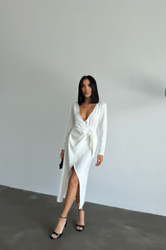 KRUVAZE BROŞ DETAYLI ELBİSE - Beyaz