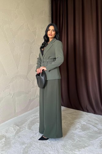 Haki Cep Kapaklı Ve Kemerli Ceket