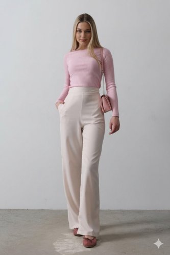 Beli Yarım Lastikli Palazzo Pantolon - Pudra