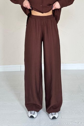 Kahverengi Alice Gömlek Ve Bol Kesim Pantolon Takım
