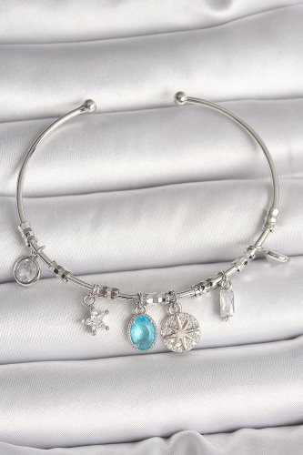 Pirinç Gümüş Renk Sallantı Pusula Figür Kalp Detay Charm Kadın Bileklik