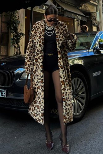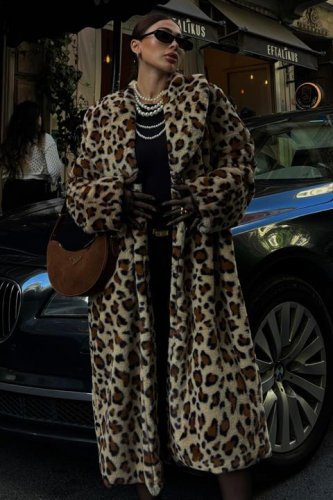 Leopar Desenli İçi Astarlı Peluş Kaban 7065