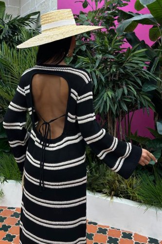 Sırt Dekolteli İspanyol Kol Triko Elbise 2848