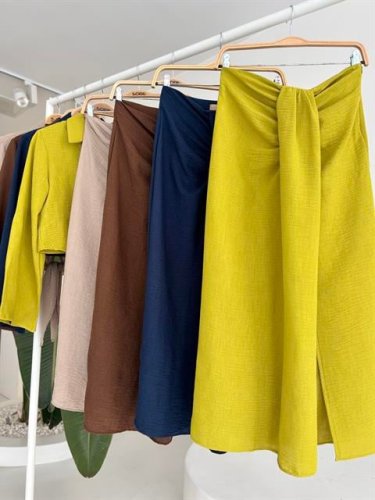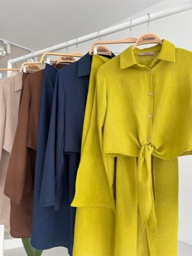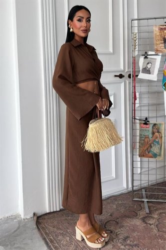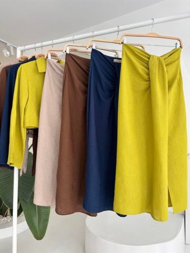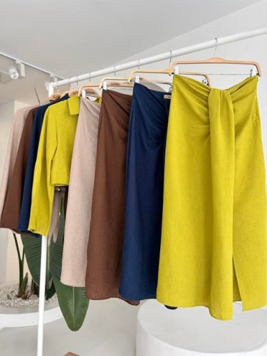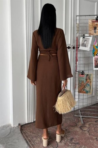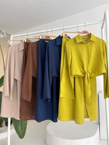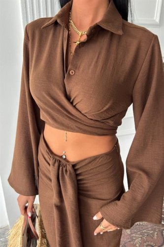 Crop Gömlekli ve Eteği Büzgülü Tasarım Takım 10195