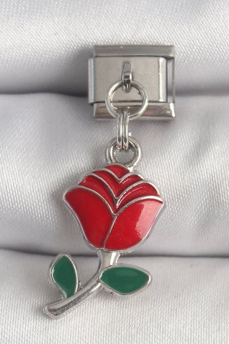 316L Çelik Gümüş Renk Sallantı Kırmızı Gül Model Nomination Charm