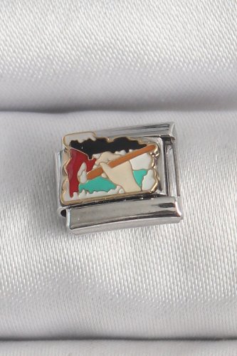 316L Çelik Gümüş Renk Renkli Palet Fırça İşlemeli Model Nomination Charm