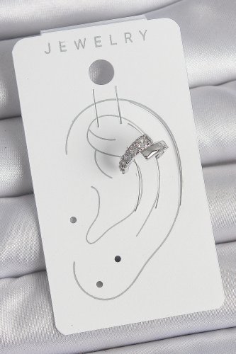 Pirinç Gümüş Renk Zirkon Taşlı Kadın Kıkırdak Küpe