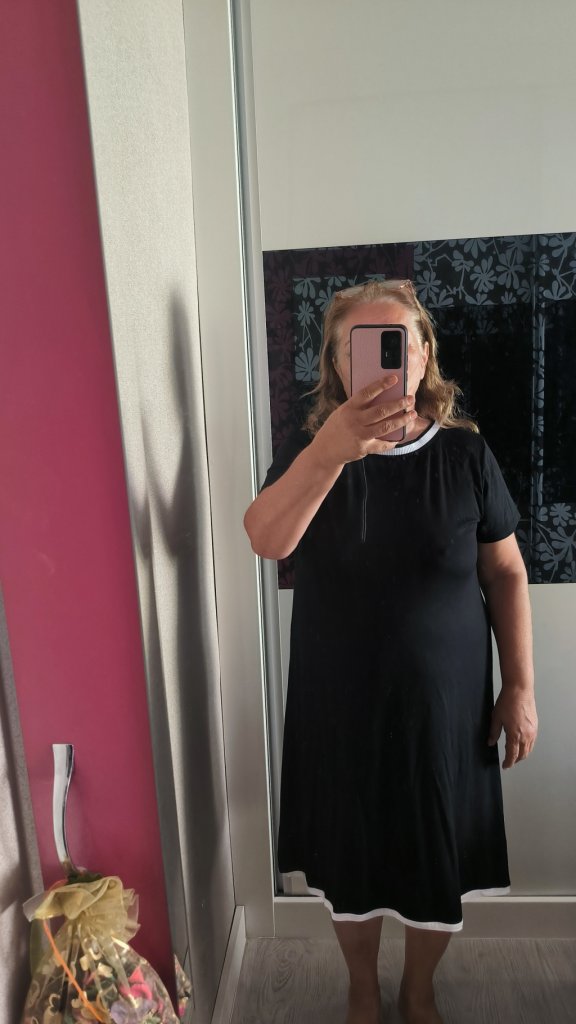 Kadın kısa kollu geniş yuvarlak yaka viskon elbise