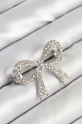 Üzeri Zirkon Taşlı Fiyonk Figürlü Gümüş Renk Kadın Broş