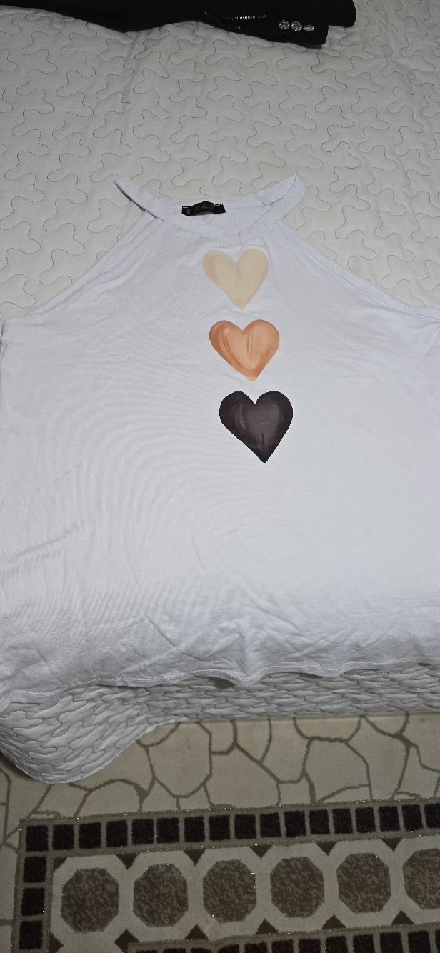 Kadın omuzlardan açık boyundan askılı kalp baskılı viskon bluz