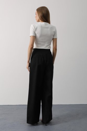 Pileli Bağcıklı Oversize Pantolon - Siyah