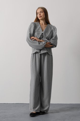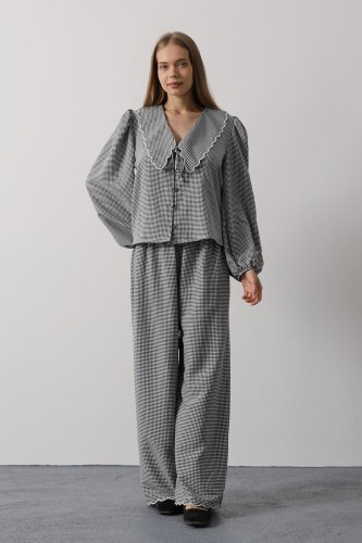 İşlemeli Bebe Yakalı Pantolon Takım - Siyah
