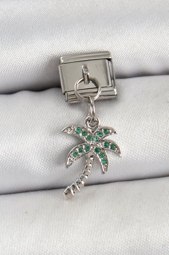 316L Çelik Sallantılı Zirkon Taşlı Palmiye Ağacı Model Gümüş Renk Nomination Charm