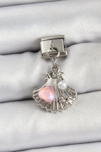 316L Çelik Sallantılı İnci Detaylı İstiridye Model Gümüş Renk Nomination Charm