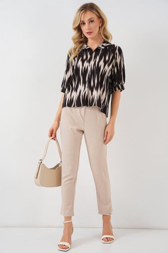 Desenli Kısa Kol Crop Gömlek 20337 - Siyah