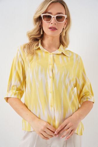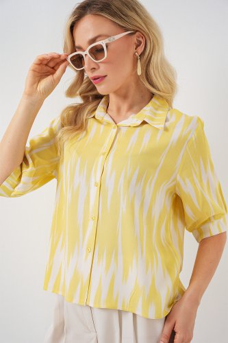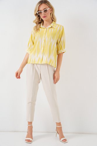 Desenli Kısa Kol Crop Gömlek 20337 - Sarı