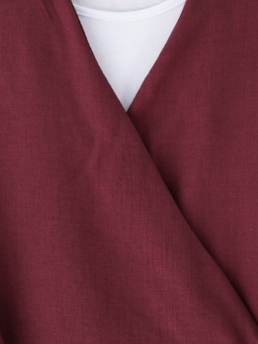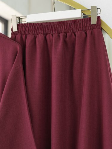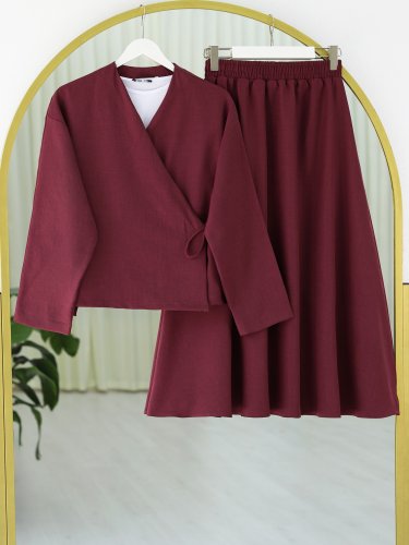 Yandan Bağlamalı Etekli Keten Takım -Bordo