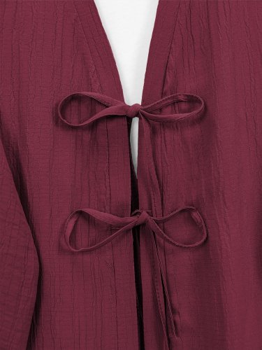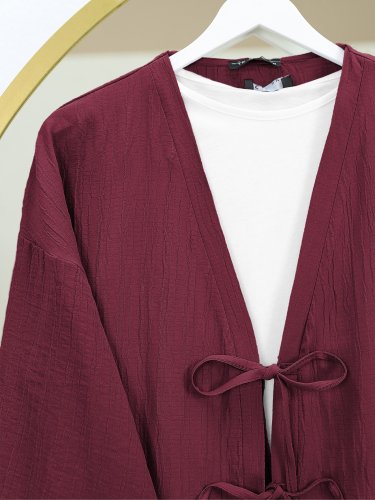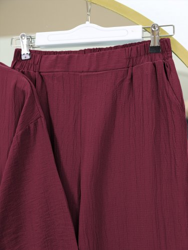 Önü Çift Bağcıklı Pantolonlu Krınkıl Takım-Bordo