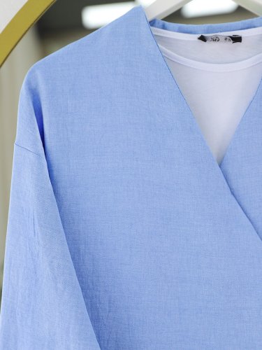 Yandan Bağlamalı Etekli Keten Takım -Bebe Mavi