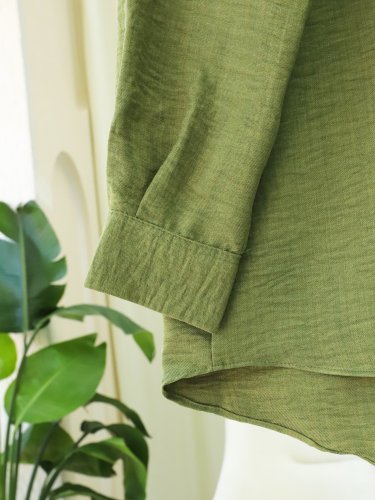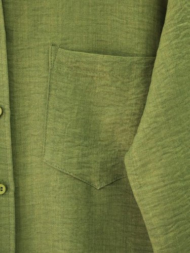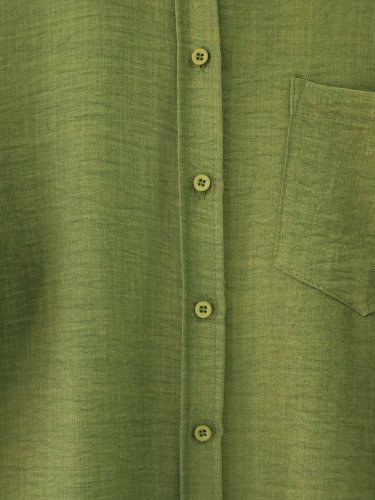 Tek Cepli Düğmeli Keten Gömlek -Haki