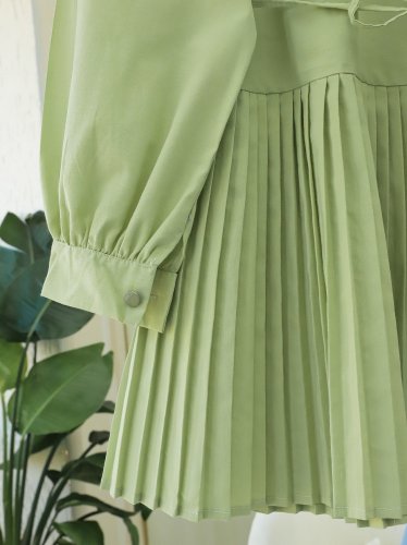 Yarım Düğmeli Beli Bağlamalı Piliseli Gömlek-AYeşil