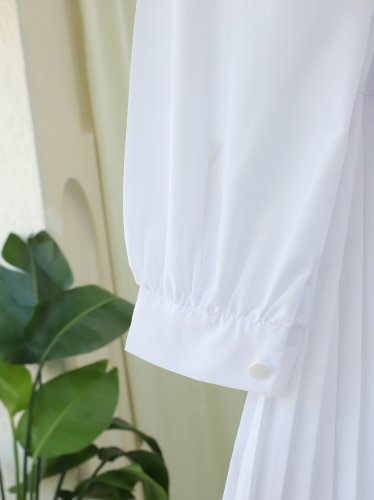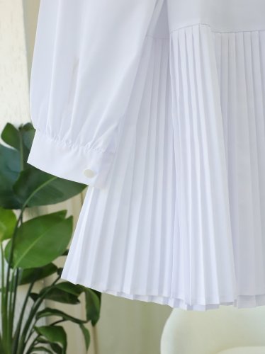 Yarım Düğmeli Beli Bağlamalı Piliseli Gömlek -Beyaz