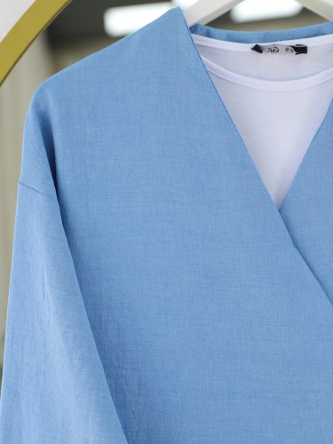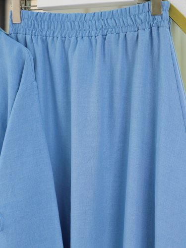 Yandan Bağlamalı Etekli Keten Takım -Açık Mavi