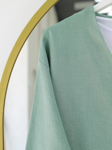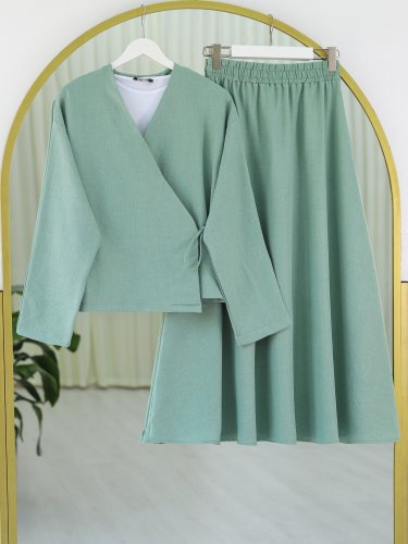 Yandan Bağlamalı Etekli Keten Takım -Su Yeşili