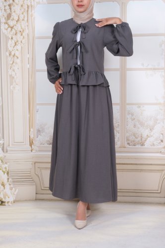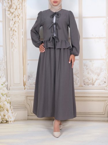 Önü Bağcıklı Kolu Lastikli Etekli Takım -Füme