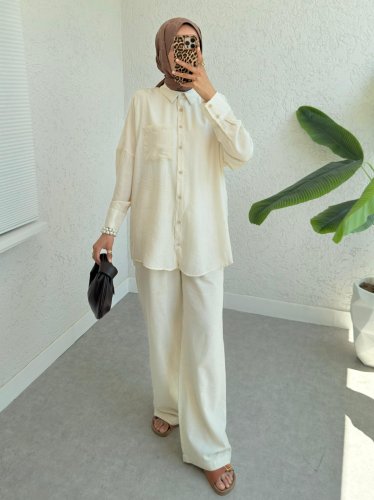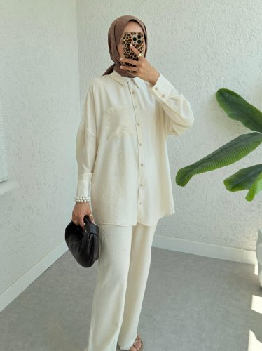 Tek Cepli Arkası Uzun Salaş Gömlek -Bej