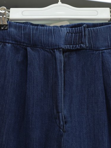 Çift Cepli Beli Lastikli Cırtlı Pileli Pantolon -İndigo