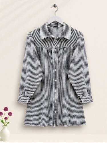 Üstü Taş Ve Boncuk Detaylı Çizgili Gömlek -Siyah