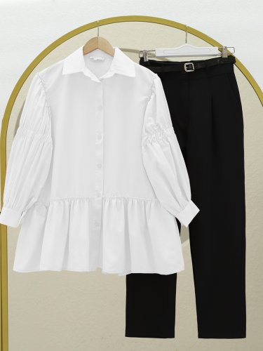 Koldan Büzgülü Fırfır Detaylı Gömlek -Beyaz