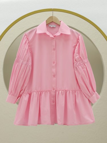 Koldan Büzgülü Fırfır Detaylı Gömlek -Pembe